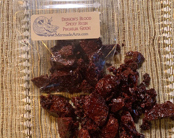 " The fruit of the tree is covered with scales. The resin seeps out between the scales, is collected, cleansed and then melted. Dragon's blood resin has been used for thousands of years in India as part of their rituals."